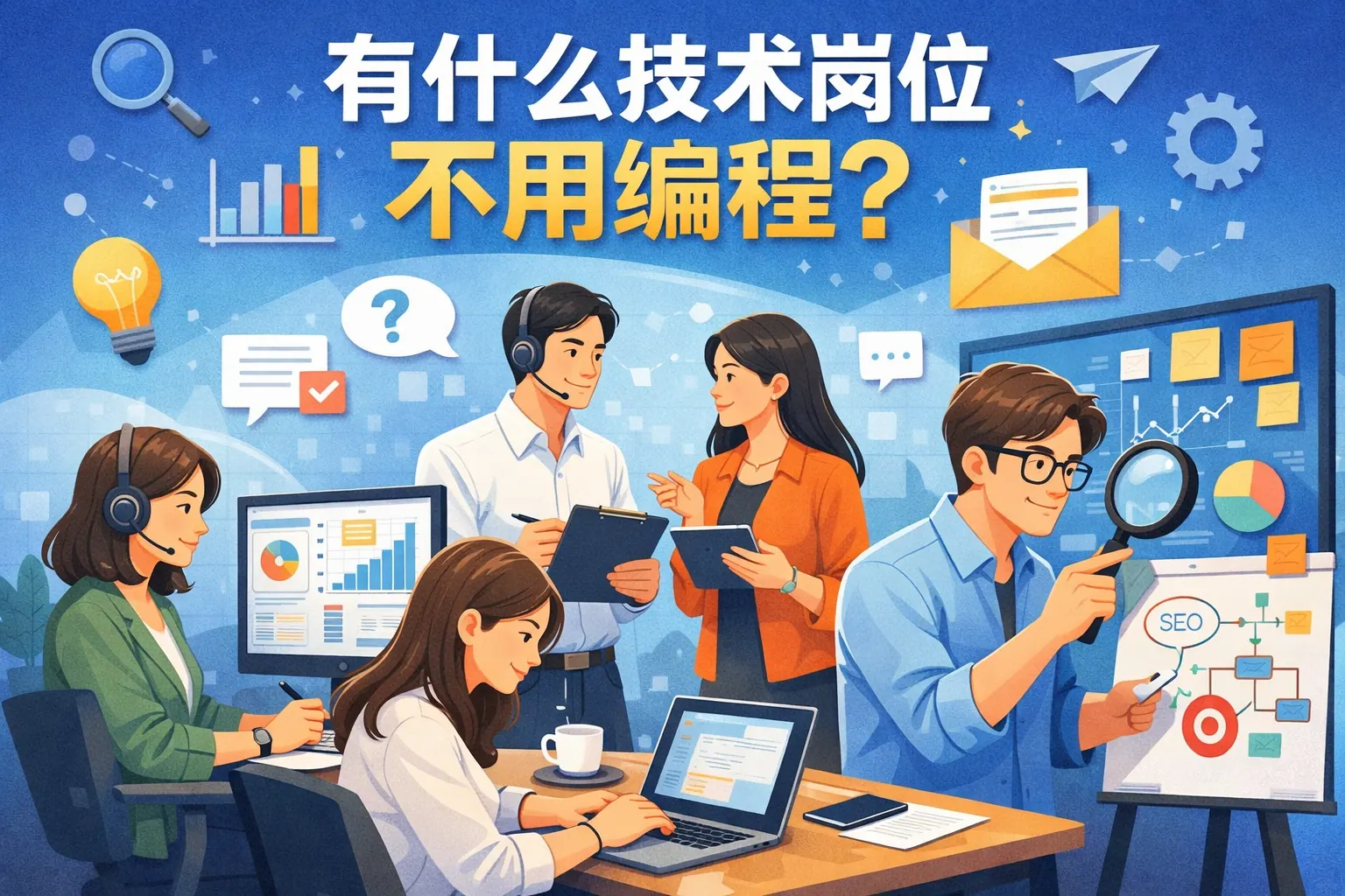 技术岗位并不等同于必须编程,产品经理、功能测试、技术支持、项目管理、数据分析以及信息安全合规等岗位都属于技术领域,但不以代码为核心能力要求。这些岗位更强调逻辑思维、沟通协调、系统理解与流程管理能力。随着低代码工具和数字化转型的发展,非编程类技术岗位的需求持续增长。选择适合自身优势的方向,并提升技术理解能力,是进入技术行业的重要路径。