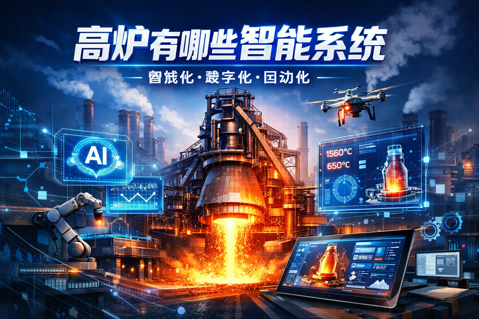 高炉智能系统由生产控制、设备监测、能源管理与数据决策等模块构成,通过实时感知、模型分析与闭环控制提升炼铁稳定性与能效水平。核心系统包括智能装料、炉况诊断、鼓风与热风控制、预测性维护、能源与碳排放管理以及智慧管控平台。结合人工智能与数据模型,高炉正从自动化走向自主优化,未来将更加聚焦数字孪生、低碳转型与全流程协同,实现稳定生产与绿色发展。