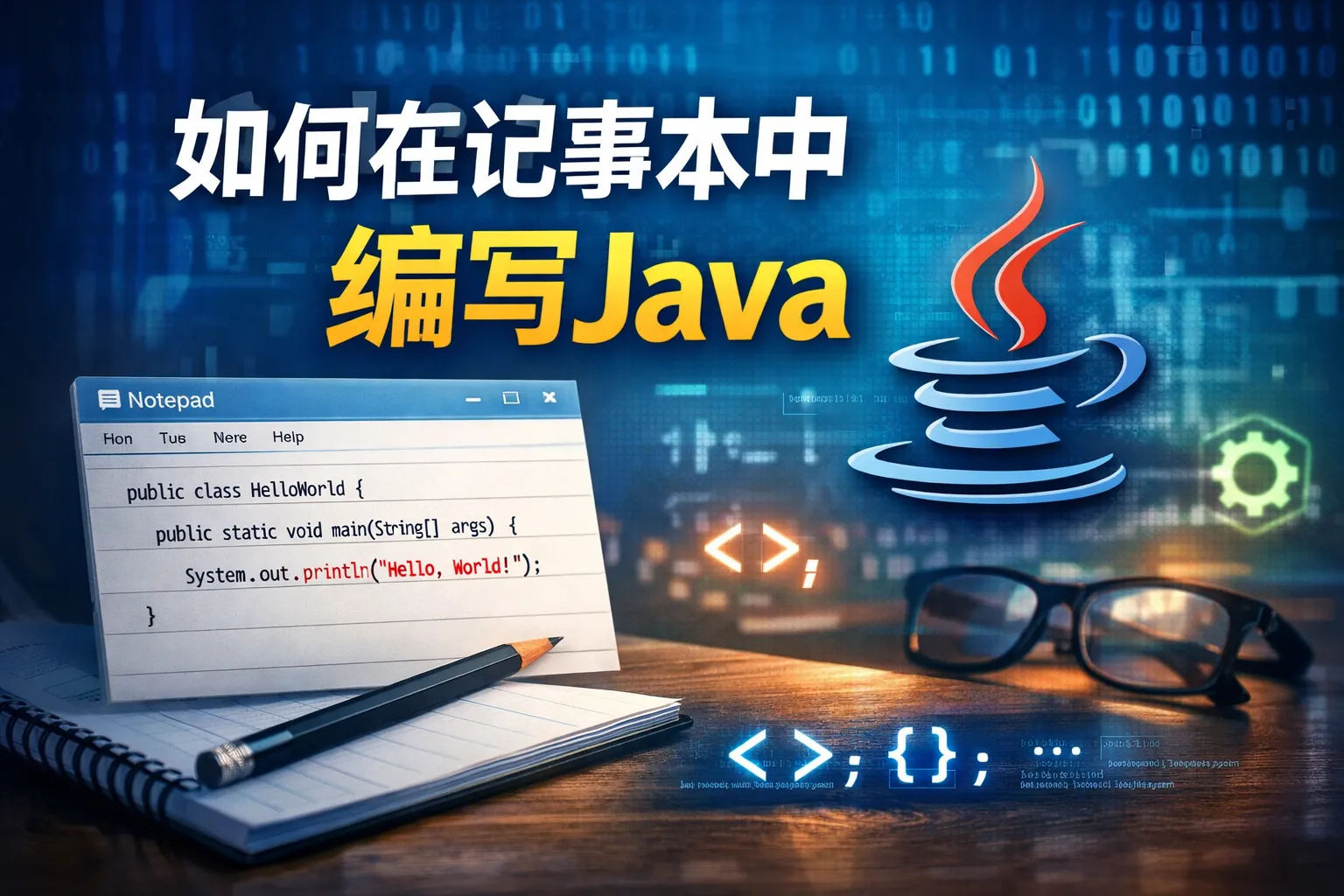 如何在记事本中编写java
