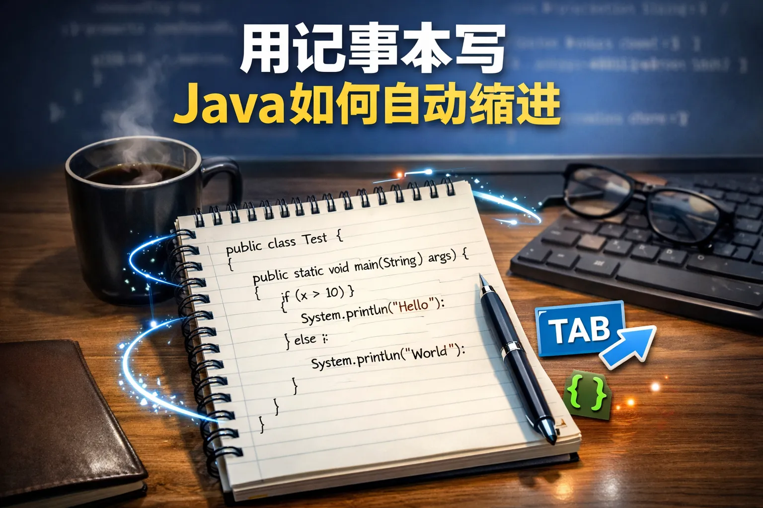 用记事本写Java如何自动缩进