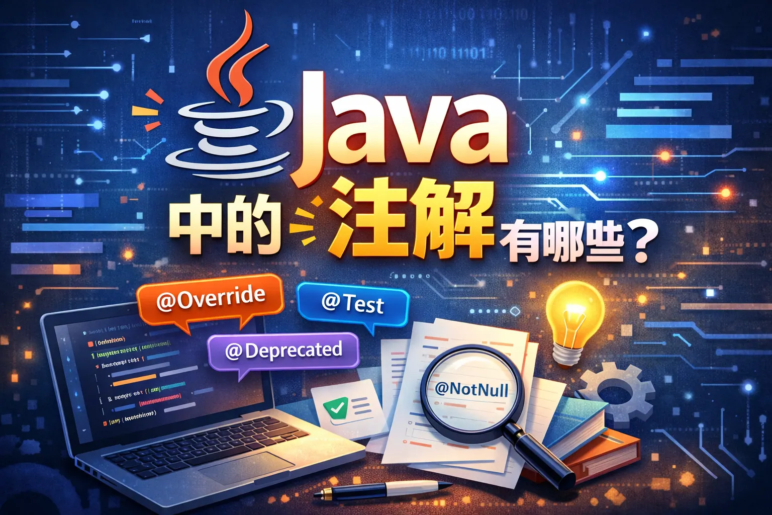 Java 注解是一种为代码提供元数据的语言机制,主要用于描述语义、约束规则和声明行为,本身不直接参与业务逻辑。常见的 Java 注解包括语言内置注解、元注解、自定义注解,以及按生命周期和作用目标划分的多种类型。通过合理使用注解,可以减少配置成本、提升代码可读性并支持框架自动化处理,但也需要注意使用边界,避免过度隐藏逻辑。整体来看,注解已成为现代 Java 架构设计中不可或缺的重要组成部分。