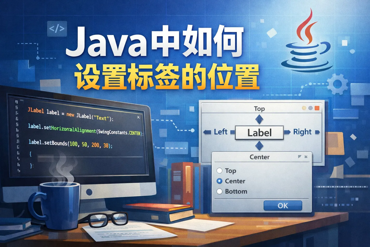 java中如何设置标签的位置