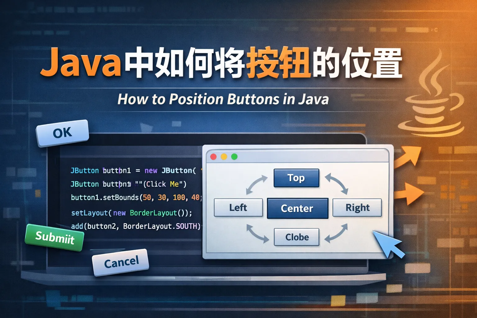 java中如何将按钮的位置