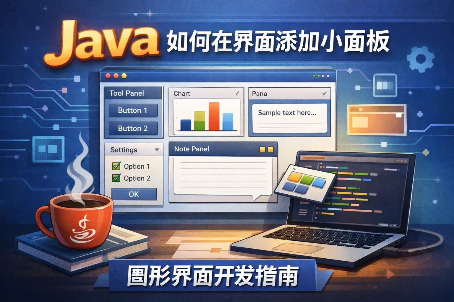 本文围绕Java将面板添加到窗口展开,介绍了Swing与JavaFX两大主流框架的选型差异,讲解了Swing面板嵌入窗口的标准开发流程,分享了多面板嵌套布局优化、跨平台适配的实战技巧,同时给出了常见问题的排查方法,核心结论指出Swing是入门首选方案,BorderLayout为最优基础布局,嵌套层级不宜超过3层。