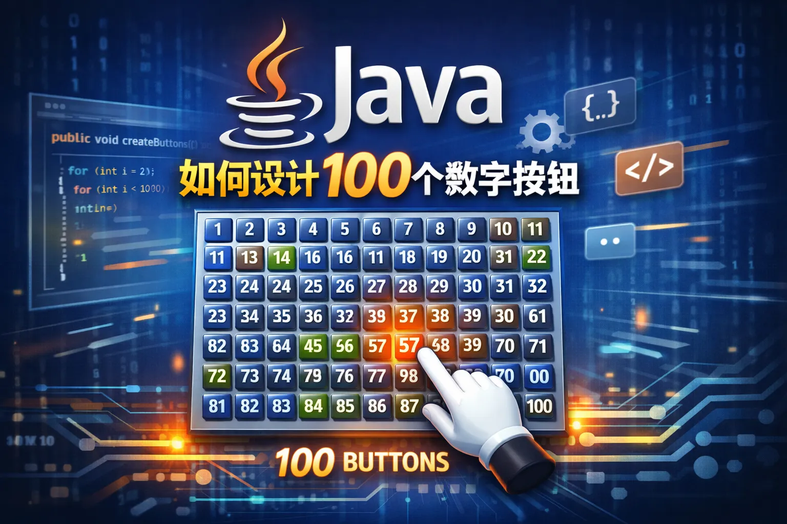 java如何设计100个数字按钮