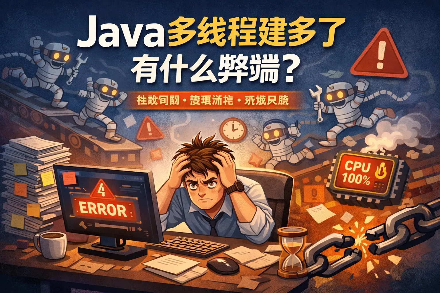 Java 多线程并非创建得越多越好,线程数量失控会带来 CPU 上下文切换频繁、内存占用激增、锁竞争加剧以及系统吞吐量下降等一系列问题。由于每个线程都需要消耗操作系统和 JVM 资源,过多线程反而可能导致 OOM、性能悖论和稳定性风险。合理控制线程规模、使用线程池并根据业务类型设计并发模型,才是提升 Java 应用性能与可维护性的关键方向。