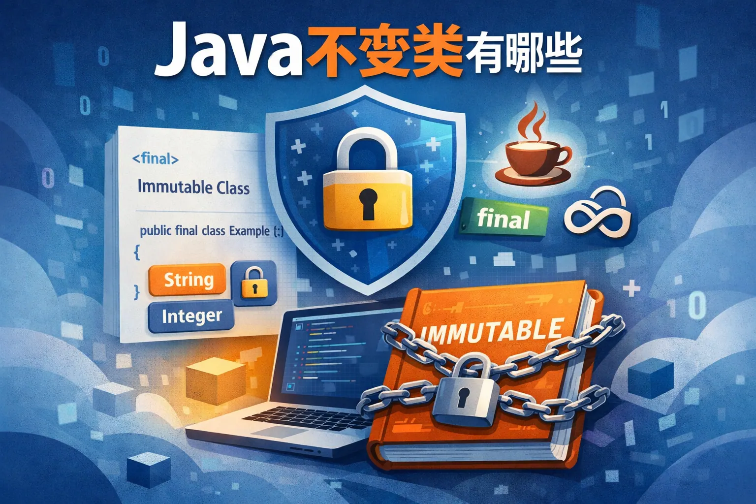 Java 不变类是指对象创建后内部状态不可再修改的类,常见包括 String、包装类、BigDecimal、Java 8 时间类和枚举等。这类对象通常通过 final 修饰、无 setter 方法和构造器初始化来保证不可变特性。不可变类天然线程安全,适合并发编程和架构设计,在现代 Java 开发中具有重要地位。随着函数式编程和 Record 类型的发展,不可变设计将持续成为主流趋势。