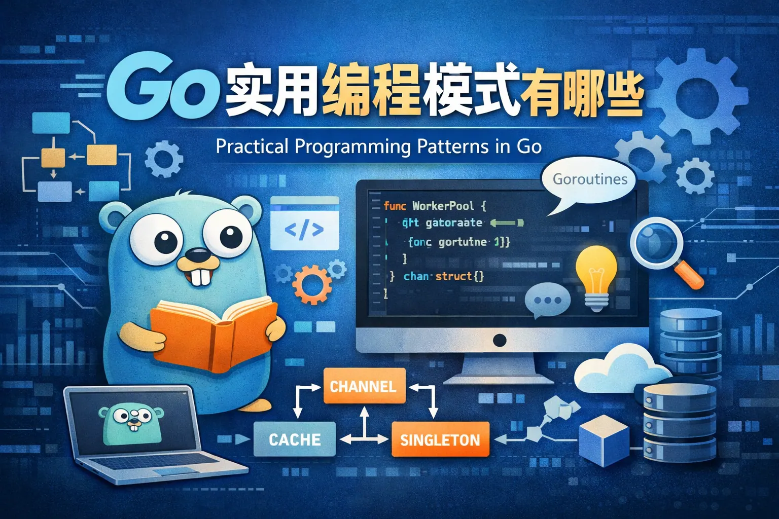 Go 实用编程模式主要包括工厂模式、函数式选项模式、装饰器模式、Pipeline 模式、CSP 并发模型、Context 控制模式、接口驱动设计、错误处理模式和依赖注入模式。这些模式结合 Go 的简洁语法与并发特性,强调组合优于继承、通过通信共享内存以及显式错误处理,能够提升代码可维护性、扩展性与并发安全性,是构建高质量 Go 项目的核心实践方法。
