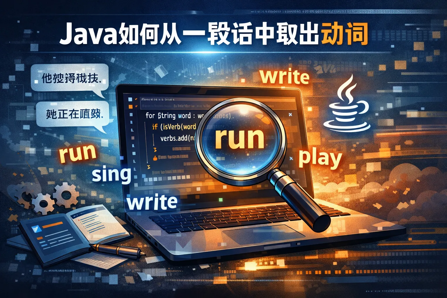Java如何从一段话中取出动词