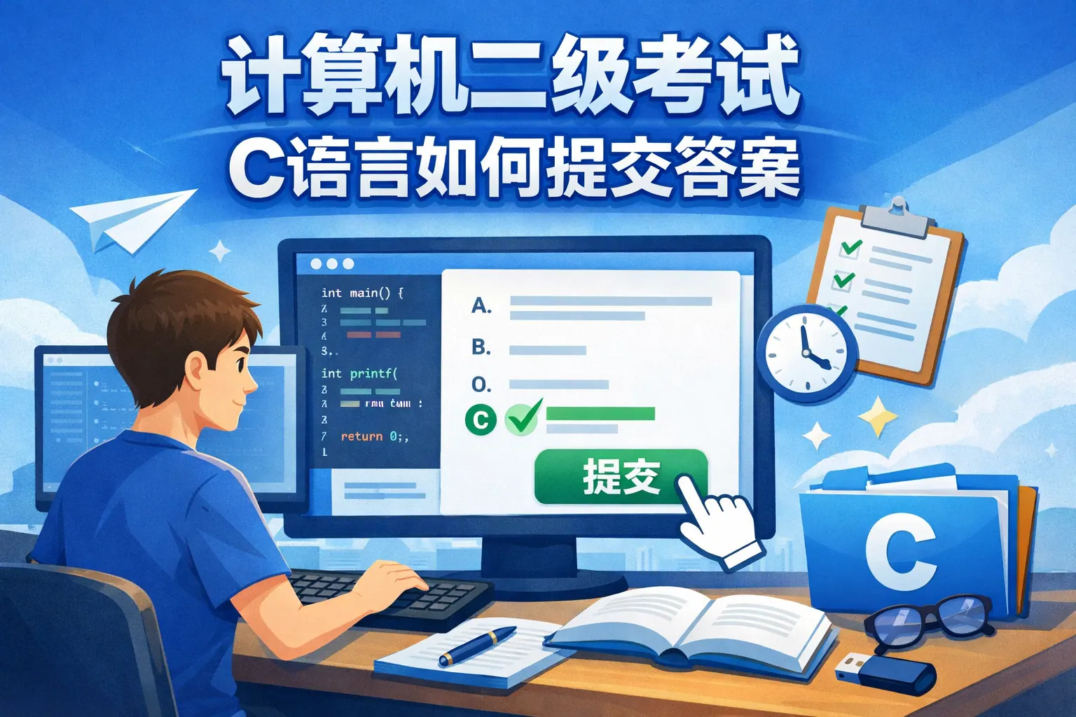 计算机二级 C 语言考试中,提交答案并非简单点击按钮,而是以整套试卷为单位,将已保存的源代码文件由系统统一上传并评测。系统评分只读取磁盘中最终保存的程序文件,本地运行正确但未保存将直接导致失分。考生需在考试结束前主动交卷,提前检查代码是否保存、能否成功编译、输出格式是否规范,并避免修改默认文件结构。理解提交机制与评分逻辑,是避免非能力性失分、稳定发挥真实水平的关键。