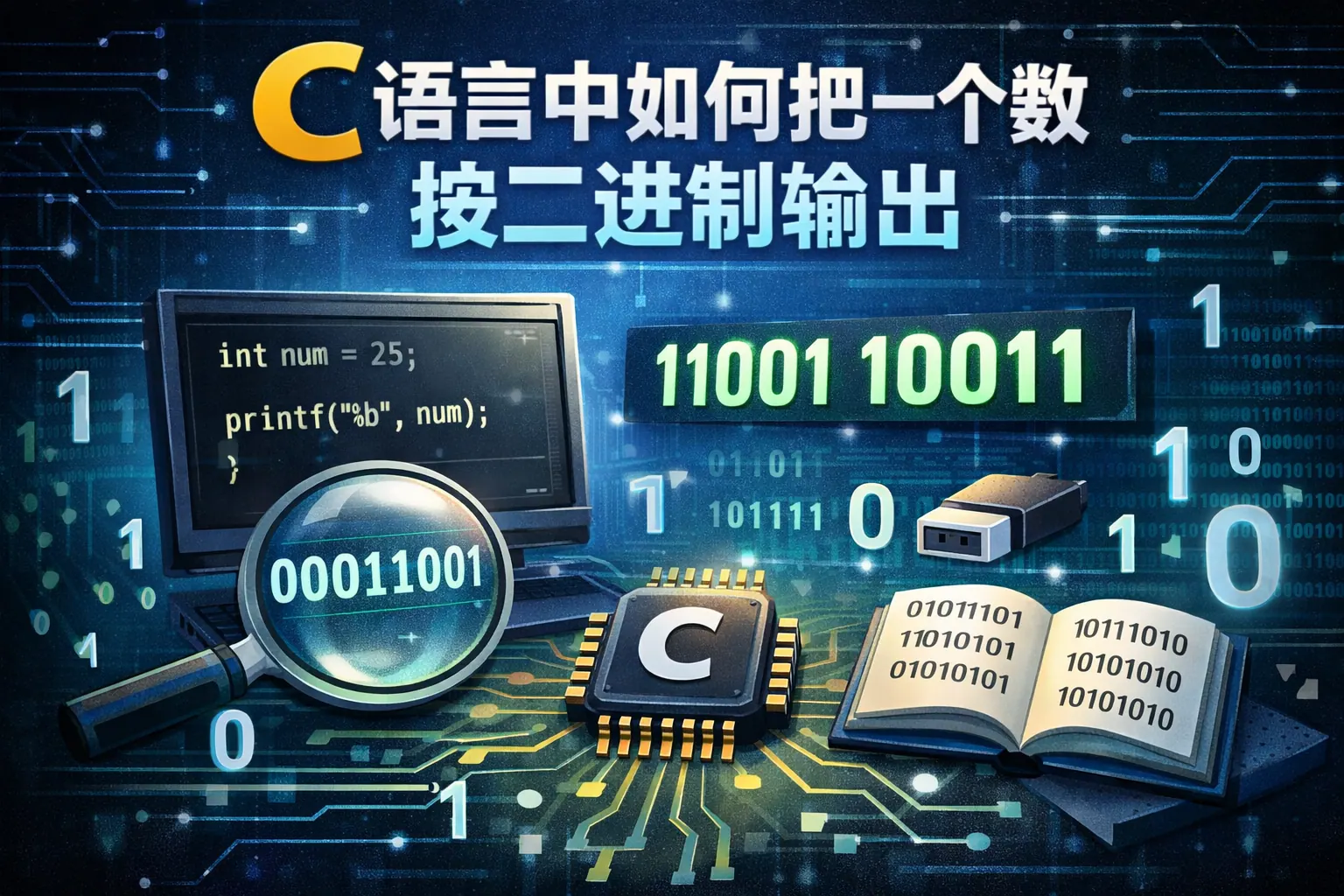 在C语言中,将一个数以二进制形式输出需要通过位移运算和按位与运算逐位提取其二进制位,因为标准库并未提供直接的二进制格式化输出。常见方法包括固定32位循环输出、去除前导零优化、递归实现以及通用函数封装。对于不同数据类型需根据位宽调整循环次数,负数则以补码形式显示。掌握位运算原理和补码机制,是实现高质量二进制输出与理解底层数据结构的关键能力。