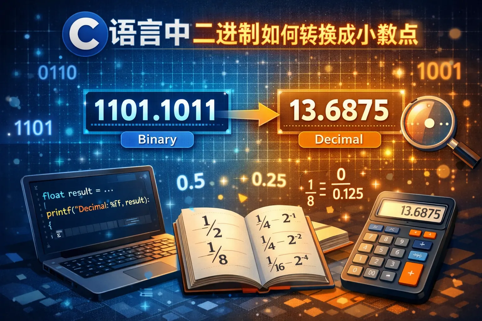 C语言中二进制如何转换成小数点