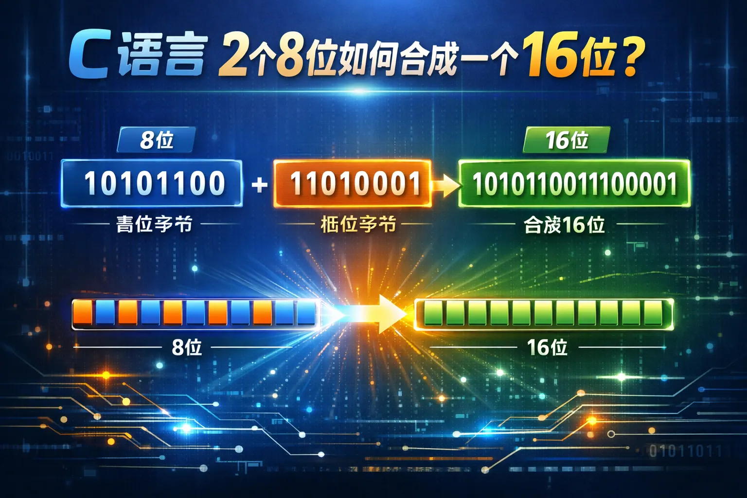c语言2个8位如何合成一个16位