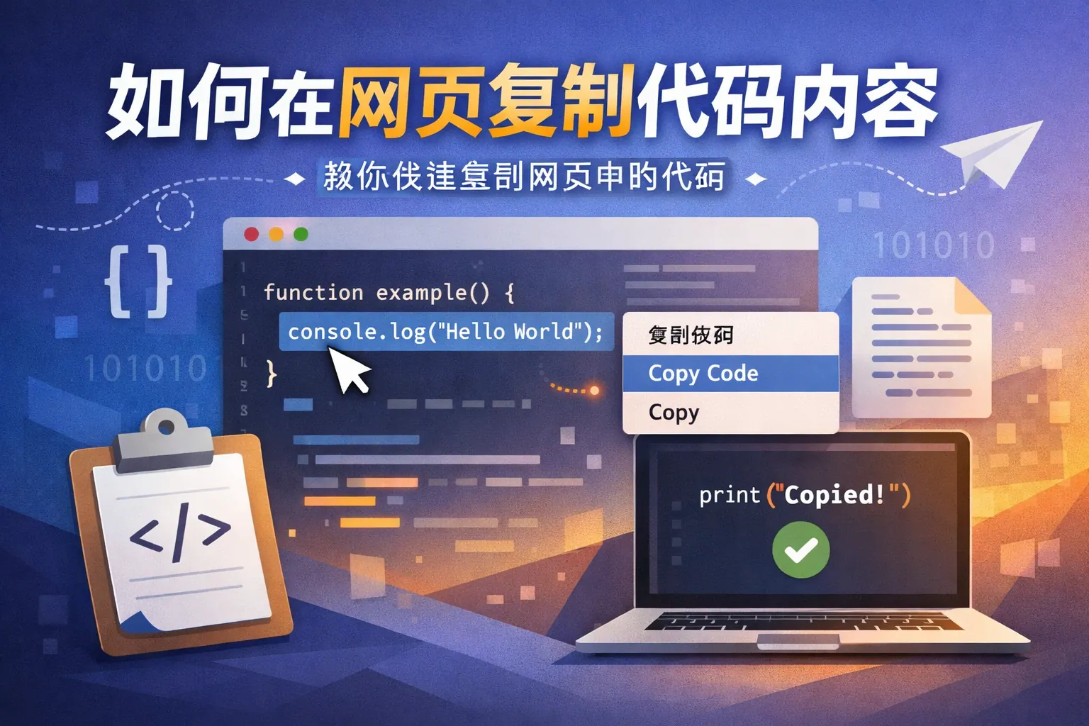 如何在网页复制代码内容