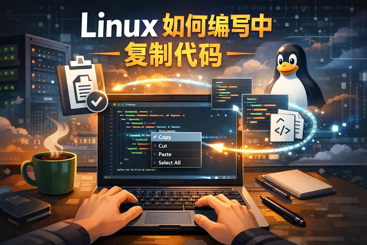 linux如何编写中复制代码