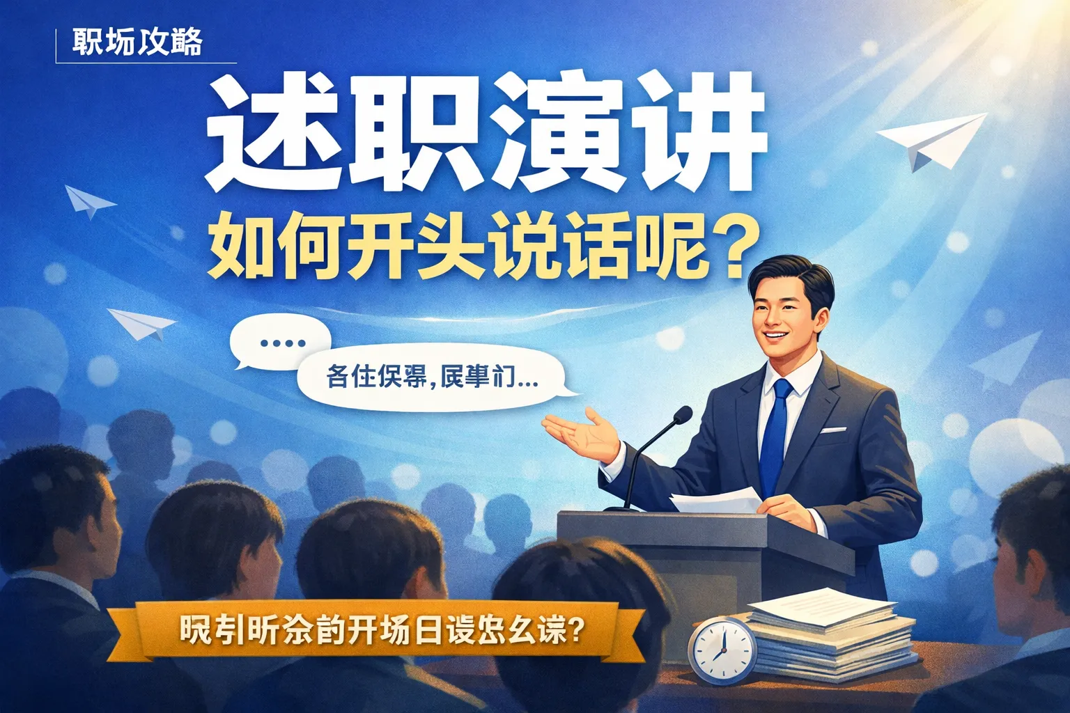 本文围绕述职演讲开场技巧展开,指出多数职场人易陷入自谦过度、数据堆砌等开场误区,结合三类述职场景给出标准化开场公式,搭配场景化提问、轻量化数据等加分技巧和避坑指南,同时针对基层员工、中层管理者和高管候选人提供差异化开场策略,帮助职场人在开场10秒锁定听众注意力,提升述职整体效果和评分