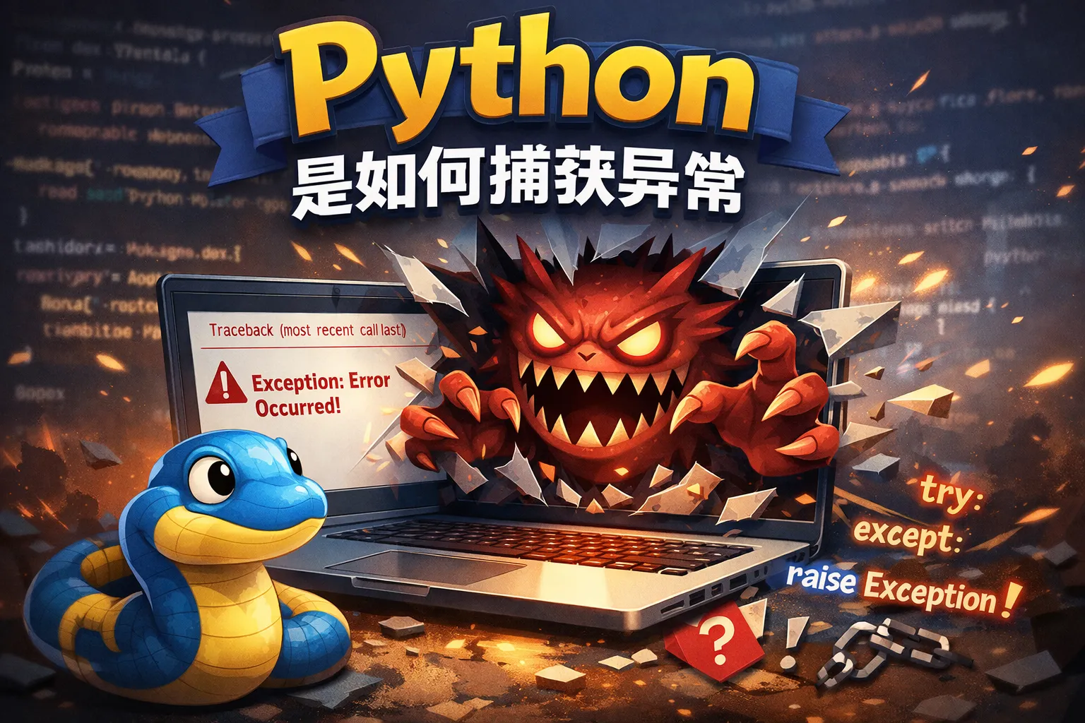 要捕捉“异常的异常”,应在异常处理路径上再加一层保护:在 except、finally、上下文管理器和回调中嵌套 try/except,将再次抛出的错误记录并用 raise ... from e 保留因果链;在并发与异步里,通过 Future.result()/exception()、threading.excepthook、sys.excepthook 和 asyncio 的任务回调或事件循环异常处理器集中收割错误,并在处理函数内继续防护;当多个任务同时失败时,使用 Python 3.11+ 的 ExceptionGroup 与 except* 精准拆分并处理。务必避免裸 except 吞掉 BaseException,使用结构化日志与错误上报平台保留 __cause__/__context__,在必要时将事件自动转入协作系统跟踪闭环,以确保原始异常与二次异常均可见、可追溯、可修复。