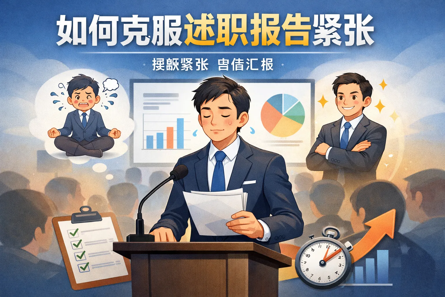 本文从根源拆解述职报告紧张的核心诱因,提出模块化筹备、临场生理干预、失误应对预案及长期脱敏训练的全流程解决方案,结合权威行业报告数据验证方法有效性,帮助职场人高效克服述职焦虑,提升述职表现。