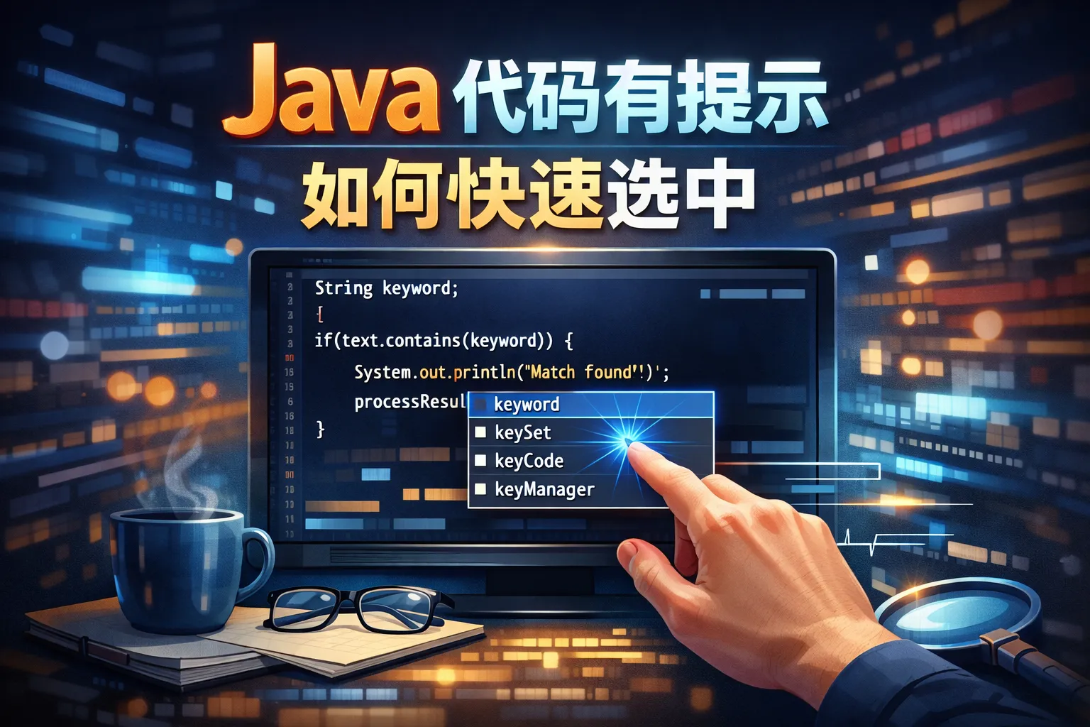 java代码有提示然后如何快速选中