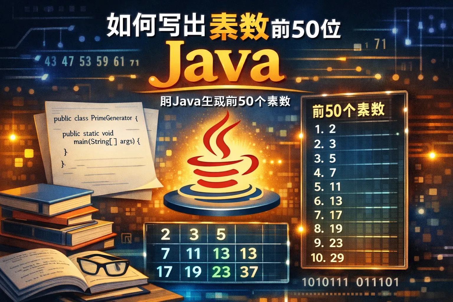 如何写出素数前50位java