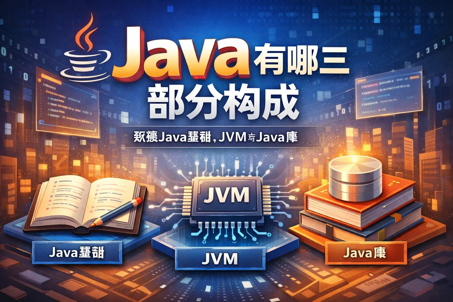 Java由Java语言、Java虚拟机和Java类库三部分构成。Java语言用于编写程序逻辑,JVM负责执行字节码并实现跨平台运行,Java类库提供大量功能接口支持开发。三者分工明确又相互协作,共同构建完整的Java平台架构,是理解Java原理、优化性能和进行系统设计的基础。