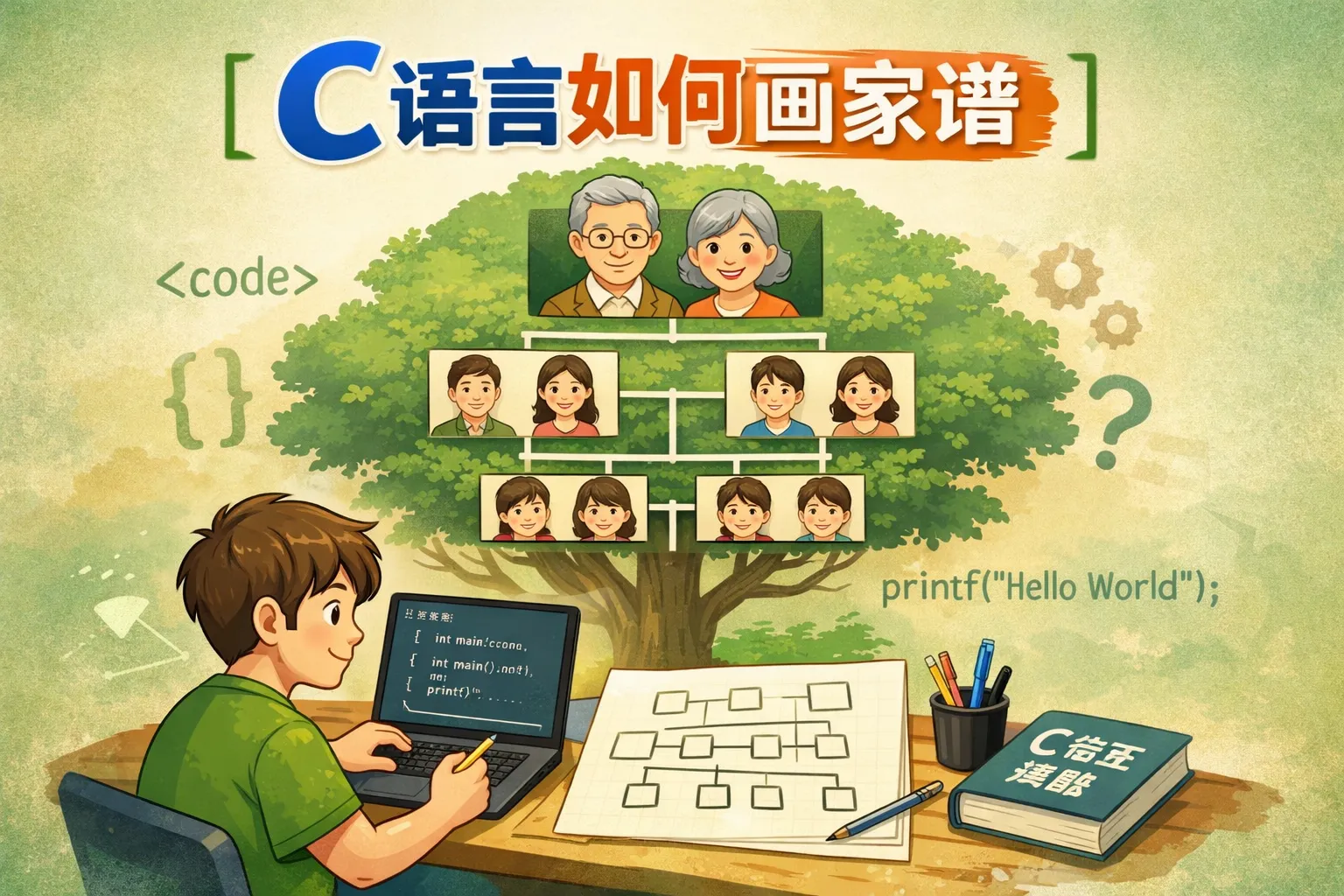 c语言如何画家谱