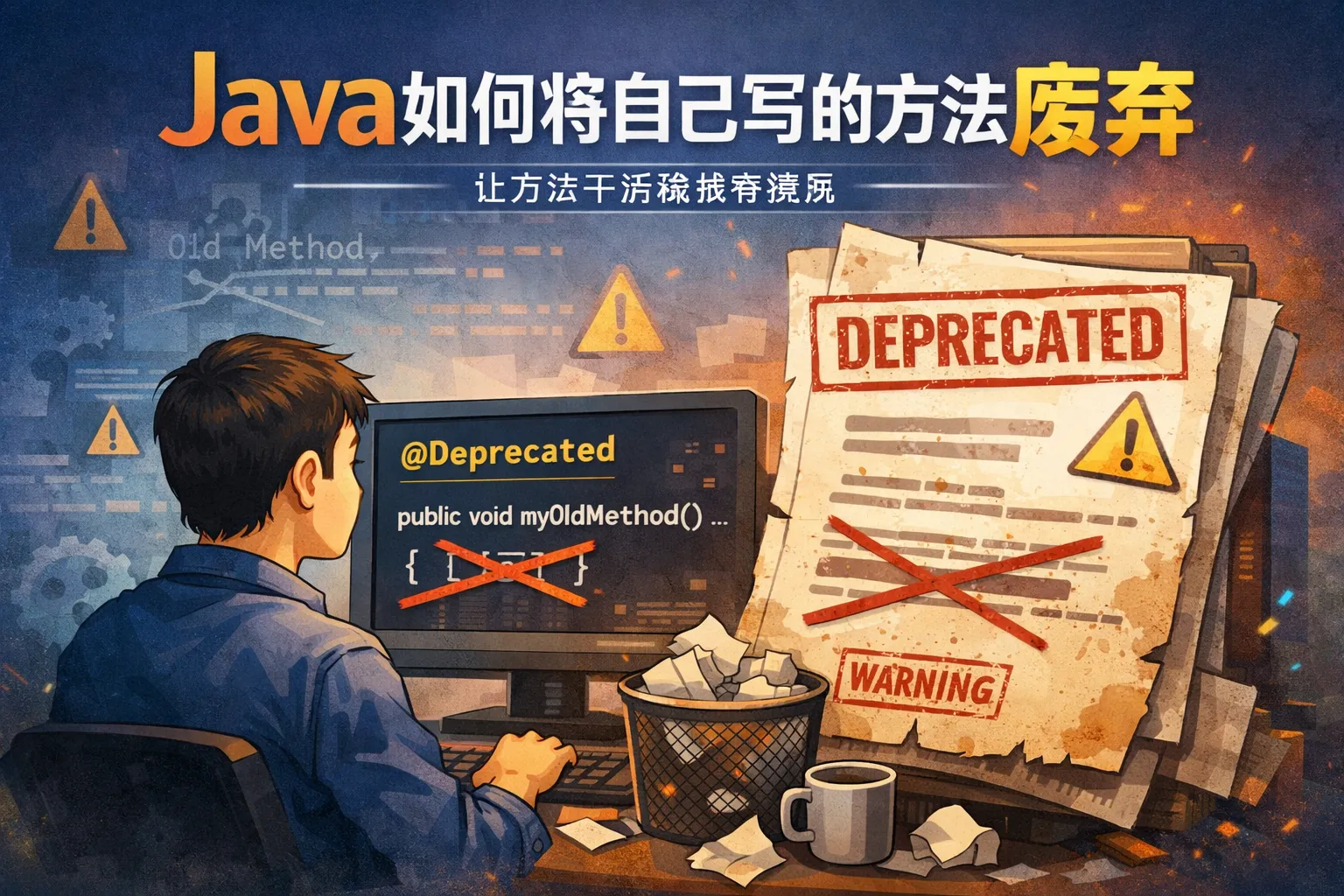 本文围绕Java方法废弃的全流程管理展开,首先明确触发方法废弃的三大典型场景,介绍JDK原生@Deprecated注解的标准用法与参数配置,对比原生注解、自定义注解与硬编码三种废弃方案的优劣势,结合JetBrains和InfoQ的权威行业报告数据说明及时清理废弃方法对管控技术债务的重要性,最后给出废弃落地的避坑指南与全链路管理流程,帮助Java开发者合规完成方法废弃动作。