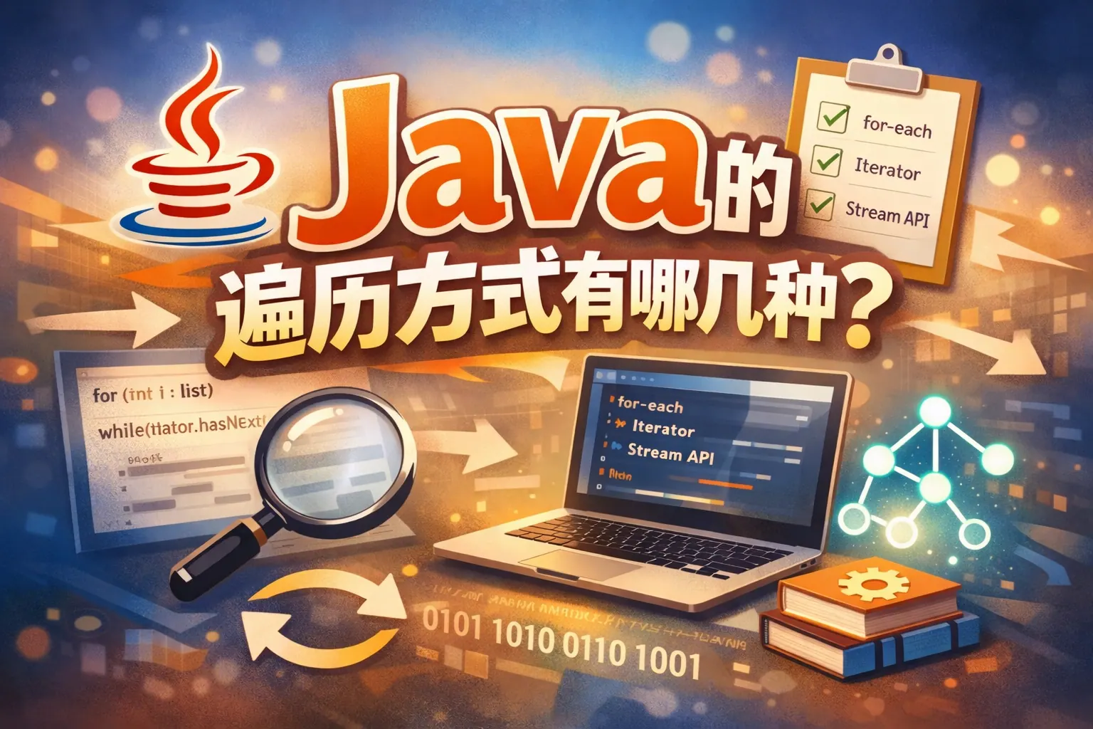 Java 常见的遍历方式包括传统 for 循环、增强 for 循环、Iterator、ListIterator、Enumeration、Stream 以及 forEach 方法。不同方式在是否支持删除元素、是否支持双向遍历、是否可获取索引以及代码可读性方面存在差异。选择合适的遍历方式应结合数据结构特性与业务需求,例如简单读取可使用增强 for 或 forEach,需要删除元素应使用 Iterator,复杂数据处理可使用 Stream。理解各种遍历机制及其底层原理,有助于编写更高效、可维护性更强的 Java 程序。