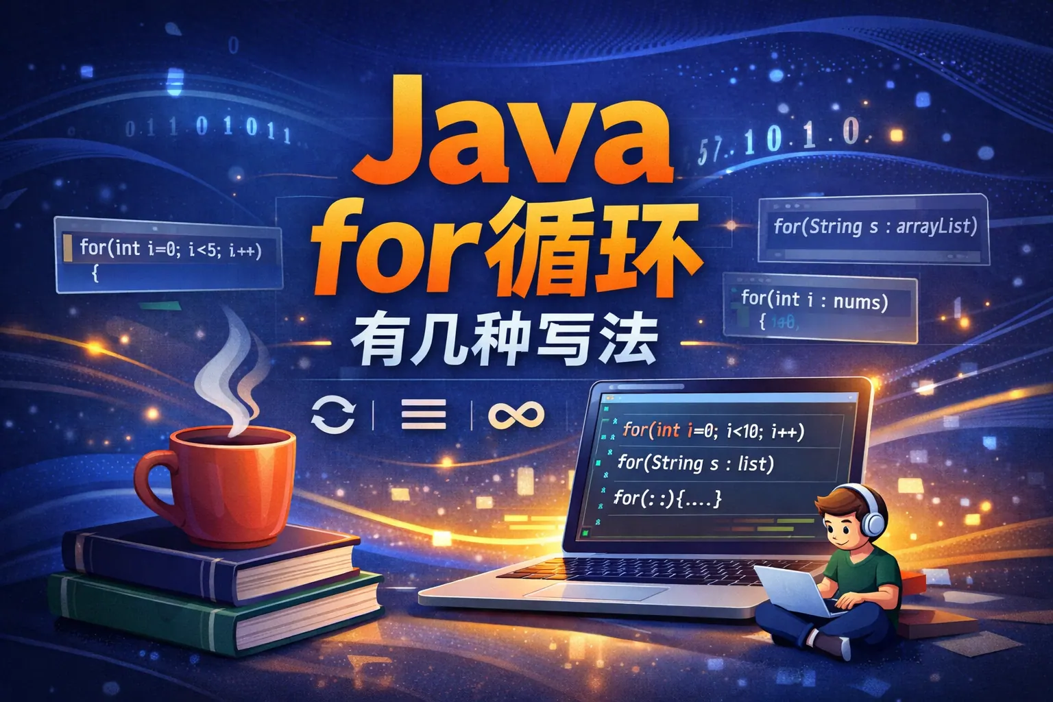 Java 中的 for 循环主要包括传统写法、增强写法、无限循环、嵌套循环以及多变量循环几种形式。传统 for 适合需要索引控制和复杂逻辑的场景,增强 for 更适合遍历数组和集合,语法简洁且安全;无限 for 常用于后台监听或持续任务;嵌套和多变量 for 多用于算法实现。理解不同写法的语法结构、性能差异与适用边界,有助于提升代码质量与可维护性。随着函数式编程的发展,部分遍历场景正在向声明式风格演进,但 for 循环仍是 Java 核心控制结构之一。