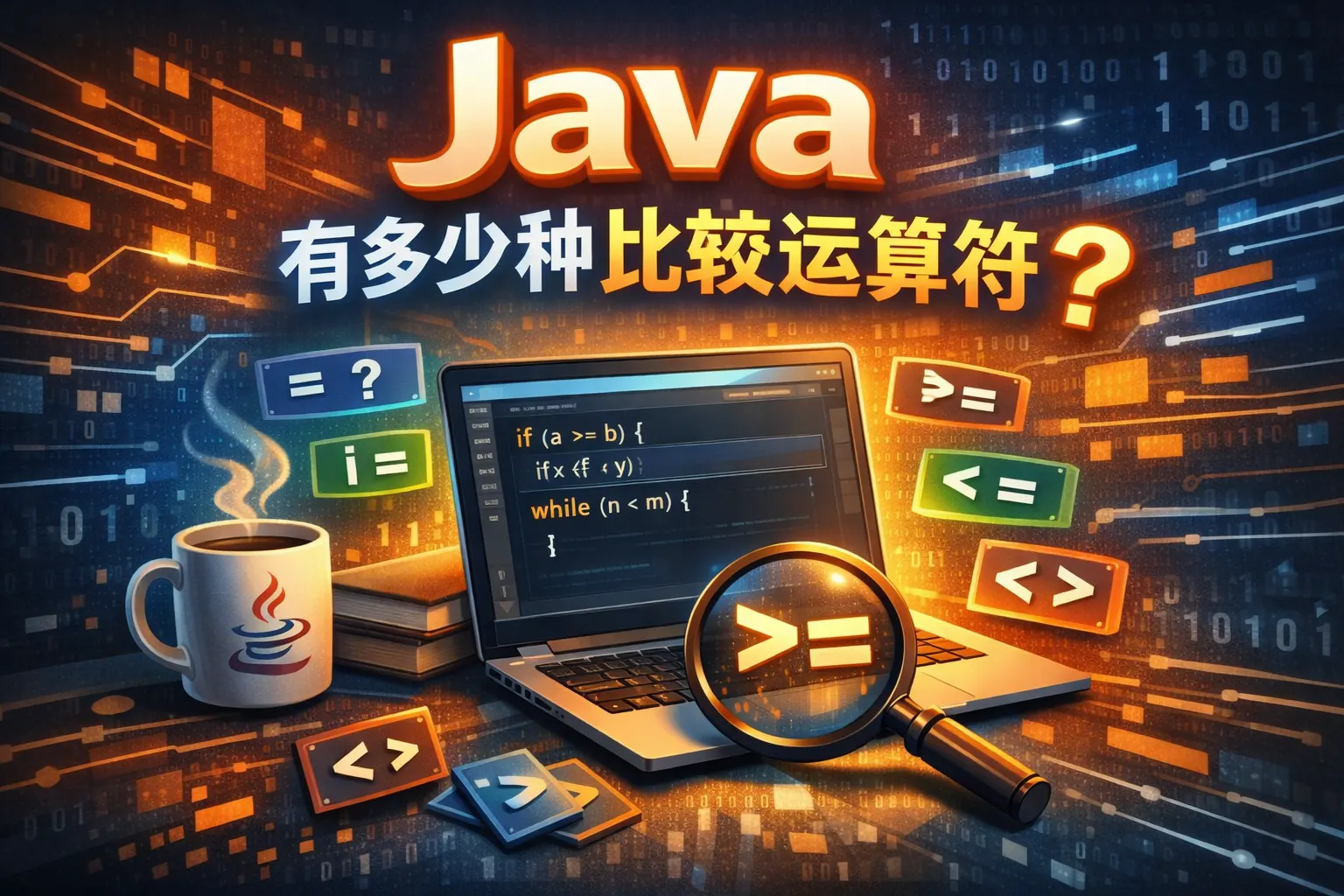 Java 一共有 6 种基础关系比较运算符:>、<、>=、<=、==、!=,以及 1 种类型判断运算符 instanceof,从语言规范角度共计 7 种比较类运算符。前六种用于数值或引用比较,返回 boolean 结果;instanceof 用于判断对象类型。此外,在实际开发中还存在 equals() 与 compareTo() 等比较机制,但它们属于方法而非运算符。理解这些比较方式的区别与适用场景,是掌握 Java 条件控制与对象比较的核心基础。
