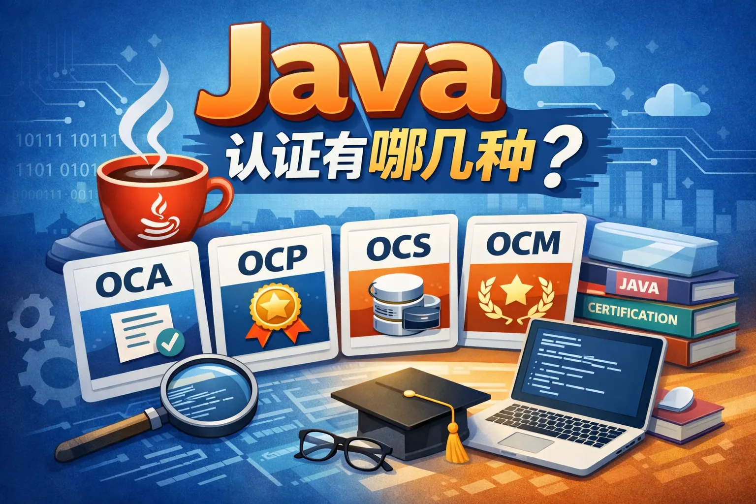 Java开发认证主要包括Oracle官方的OCA、OCP和OCM三个层级,分别对应入门、进阶和高级架构能力认证,是目前全球认可度较高的Java认证体系。此外,还可结合云与架构类认证拓展能力边界。OCA适合初学者夯实基础,OCP强调工程实践能力,OCM面向资深开发与架构方向。认证的价值在于系统化能力验证和职业背书,但长期发展仍取决于项目经验与综合技术能力。
