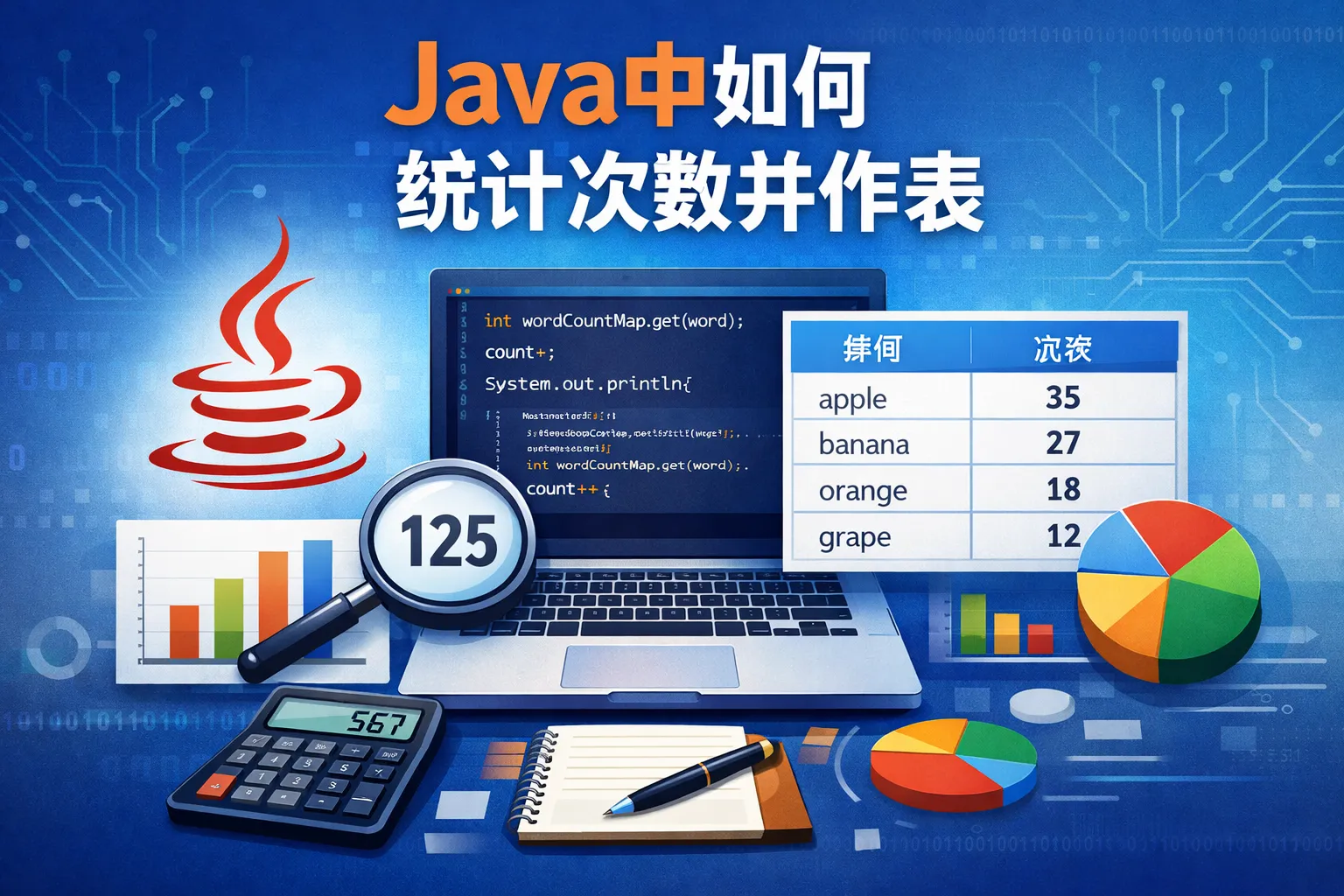Java中如何统计次数并作表