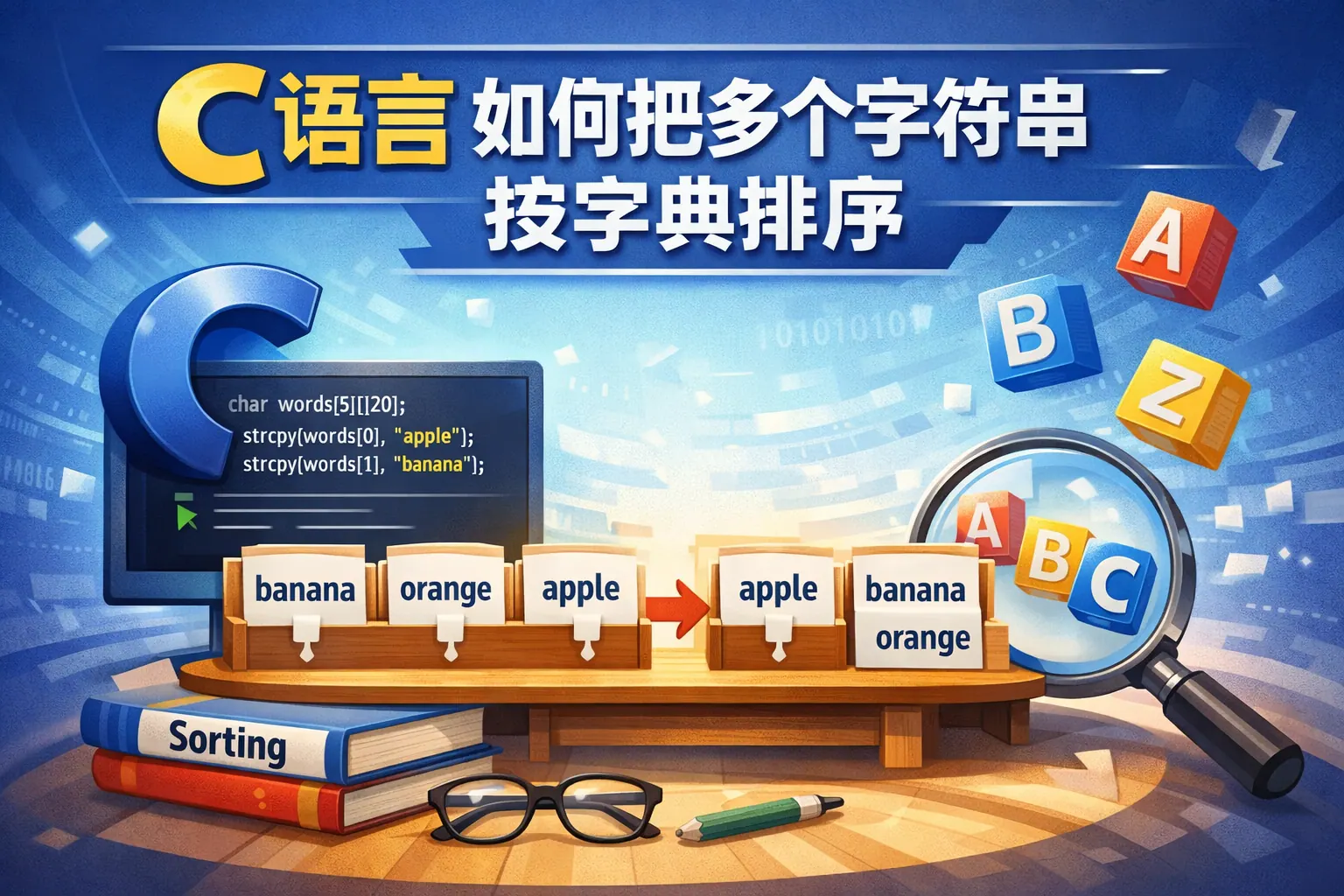 在C语言中,将多个字符串按字典序排序的关键是理解字符串本质为以空字符结尾的字符数组,并利用strcmp进行逐字符比较。实际实现时推荐使用qsort结合字符串指针数组,以提高排序效率并减少数据拷贝。对于小规模数据可以使用冒泡等简单算法,但在工程实践中应优先选择标准库函数。同时需注意大小写敏感问题、动态内存管理和比较函数指针类型转换错误。掌握字符串排序不仅有助于提升C语言编程能力,也有助于深入理解数据结构与算法原理。