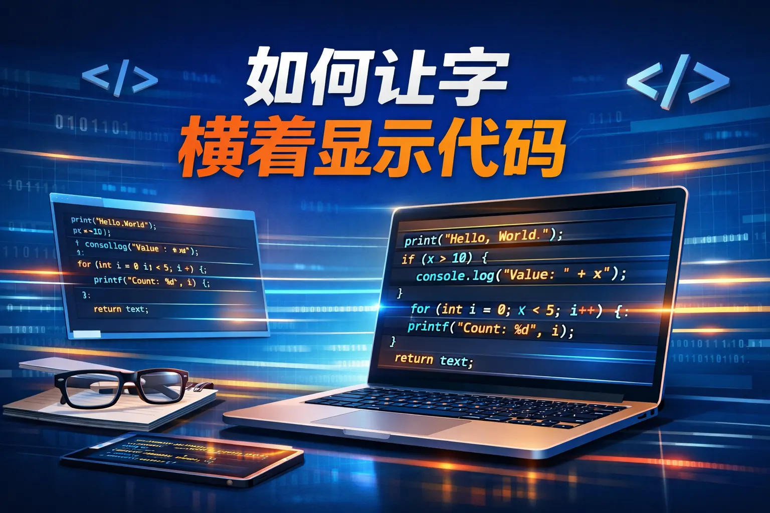 如何让字横着显示代码