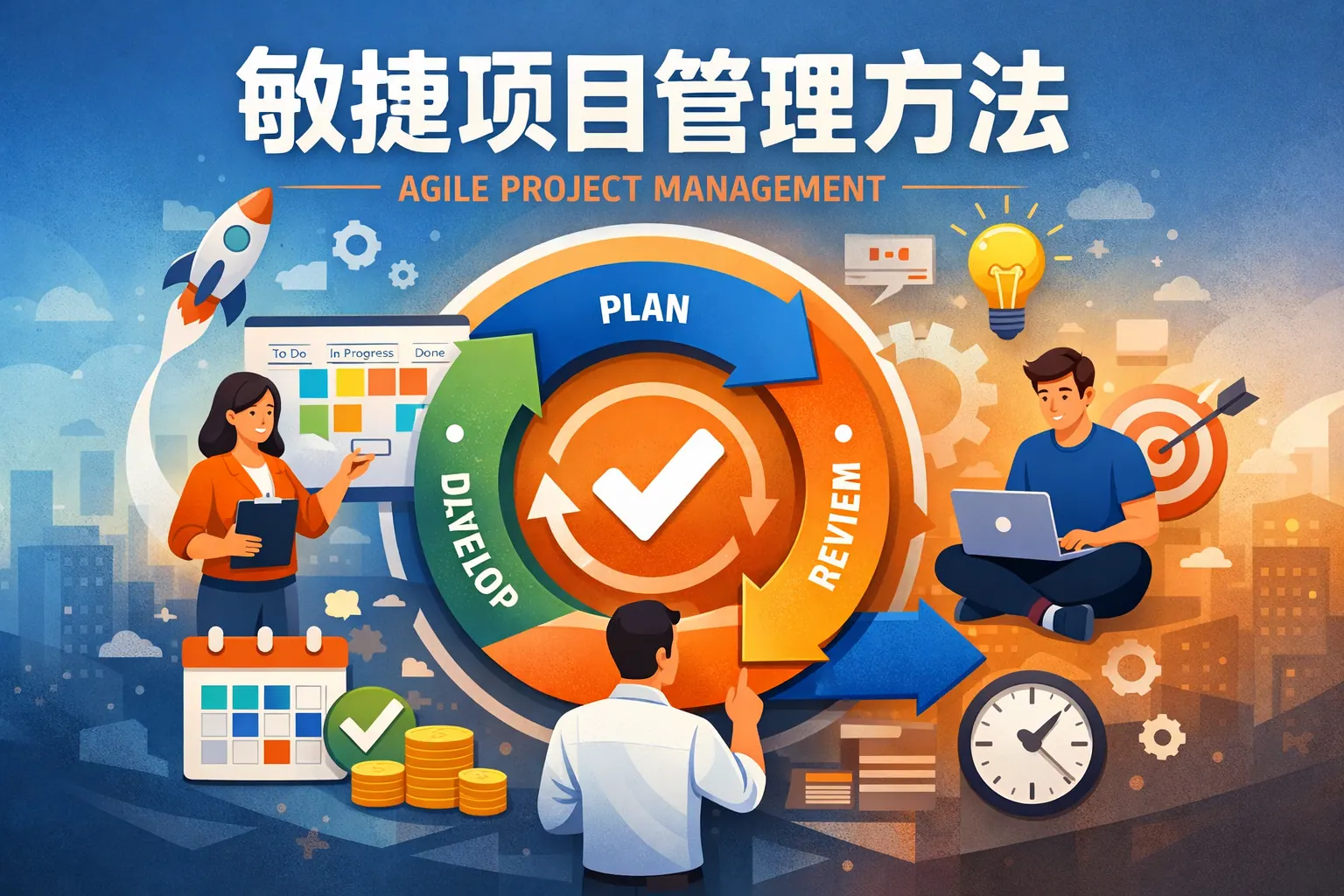 敏捷项目管理通常包括愿景规划、待办事项梳理、迭代计划、迭代执行、评审反馈、回顾改进和持续交付等阶段,这些阶段以短周期循环方式推进,通过持续反馈和动态调整实现价值最大化。与传统模式相比,敏捷更强调用户参与、高频交付与团队自组织能力。未来敏捷管理将更加数据化与智能化,成为组织提升协作效率和创新能力的重要方法。
