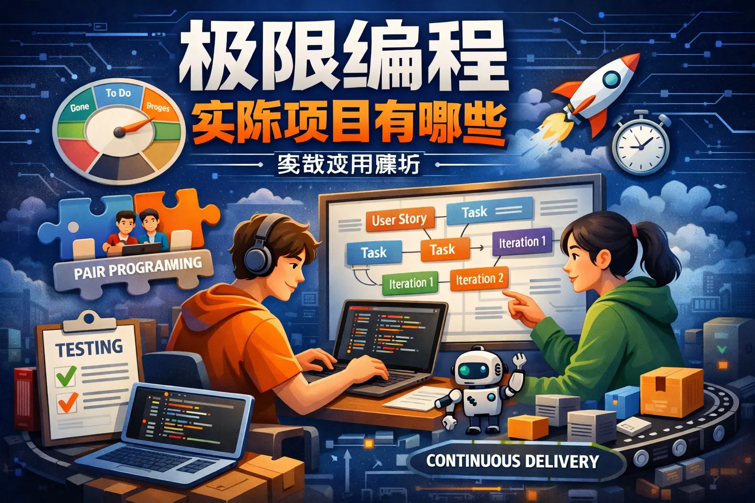 极限编程在实际项目中已广泛应用于互联网平台、金融科技系统、开源软件开发及企业数字化转型项目。通过测试驱动开发、持续集成、小步迭代和结对编程等实践,团队能够在需求频繁变化的环境中保持高质量交付与快速响应。典型案例包括C3薪资系统以及大型互联网企业的工程实践。极限编程适合技术复杂、质量要求高的项目,但成功实施依赖团队能力、组织文化和自动化工具支持。未来其理念将与持续交付和自动化深度融合,成为现代软件工程的重要组成部分。