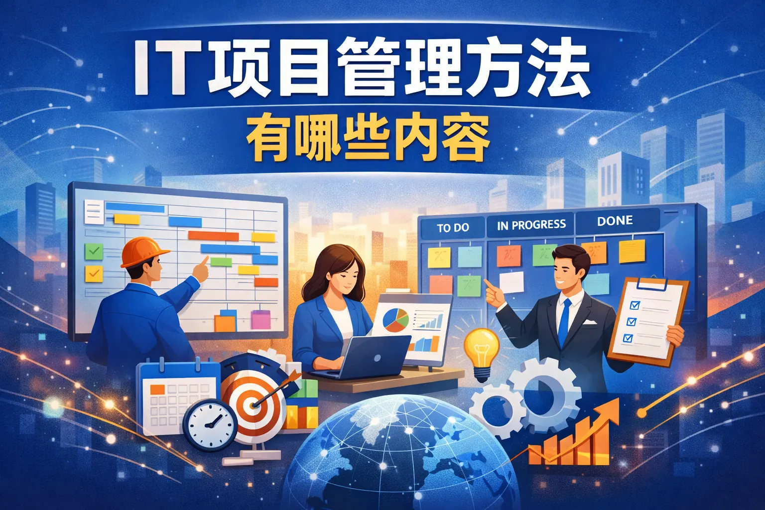 IT项目管理方法包括瀑布模型、敏捷方法、Scrum、看板、XP、PRINCE2、PMBOK及混合式管理等,不同方法在需求稳定性、变更响应能力与适用场景上存在差异。传统方法强调流程与阶段控制,敏捷方法强调迭代与价值交付,混合模式则结合两者优势。企业应根据项目复杂度、团队能力与组织成熟度选择合适的管理方式,并结合数字化工具与数据驱动手段提升项目成功率。未来IT项目管理将更加注重灵活协作与持续改进能力。