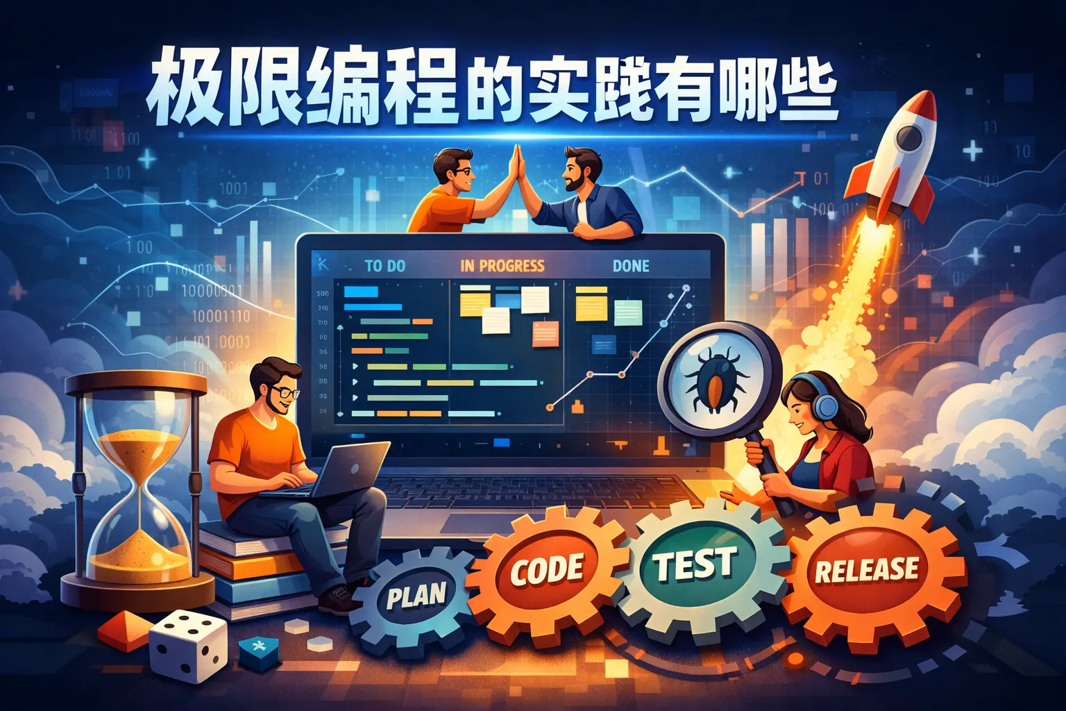 极限编程是一种以工程实践为核心的敏捷方法,其主要实践包括结对编程、测试驱动开发、持续集成、小步快跑发布、简单设计、持续重构以及用户故事与现场客户参与。这些实践围绕沟通、简单、反馈、勇气与尊重五大价值观展开,通过强化代码质量与团队协作,实现快速响应变化与高质量交付。随着自动化与持续交付体系的发展,极限编程的工程实践正逐渐成为现代软件开发的重要基础能力。