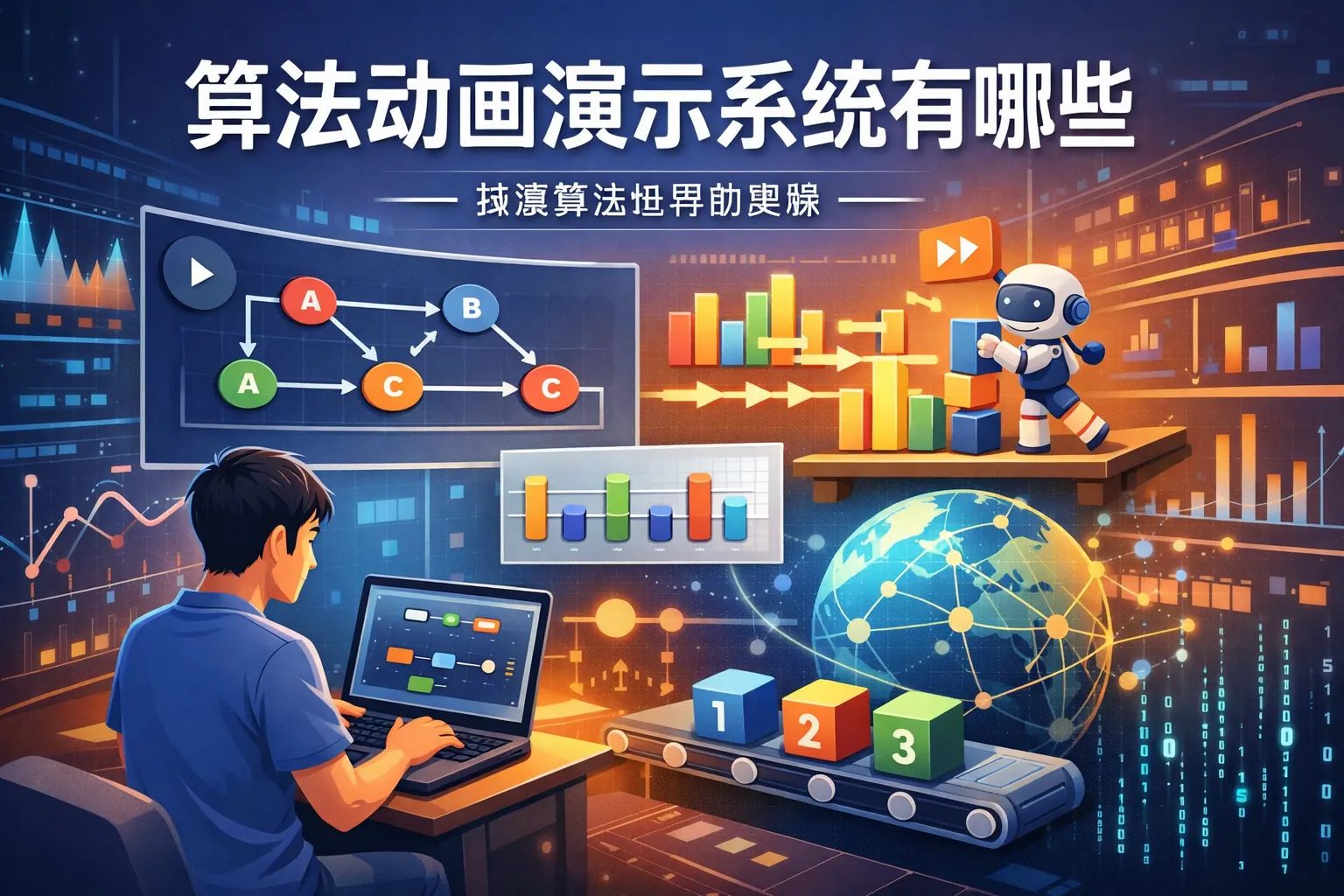 算法动画演示系统通过动态可视化方式将抽象算法过程转化为直观图形展示,主流类型包括在线交互平台、开源可视化框架、IDE集成工具与商业课程系统。不同系统在交互深度、扩展能力与适用场景方面存在差异,教学场景更适合使用在线平台,开发与研究更适合开源框架,企业培训则强调协作与管理能力。随着可视化与智能技术发展,算法动画系统将向自动化与沉浸式方向演进。