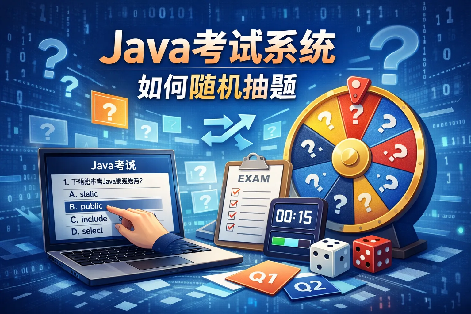 本文围绕Java考试系统随机抽题展开,从核心逻辑选型、数据库落地、权重配置、防作弊方案和性能优化五个维度,拆解了从入门到进阶的实战实现路径,结合权威报告数据和对比表格验证了分层抽样算法的优势,给出了可落地的优化技巧,帮助开发者构建高并发、公平性强的抽题系统。