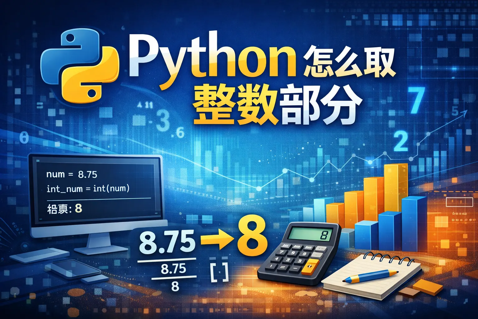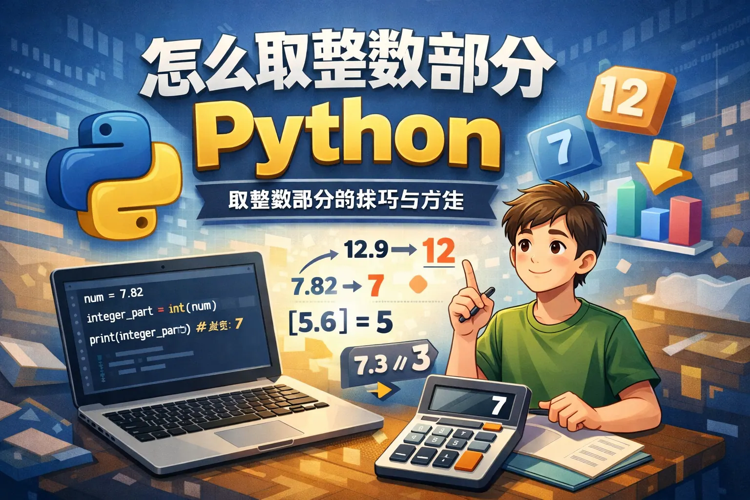 在 Python 中获取整数部分常见方式包括 int()、math.trunc()、math.floor() 以及 // 运算符。int() 和 trunc() 执行向零截断,适合简单去除小数;floor() 与 // 执行向下取整,适用于负数场景与除法计算。选择方法时应结合负数处理逻辑与浮点精度问题,在普通计算中优先使用 int(),在严格数学语义或分页等运算场景中使用 floor() 或 // 更为稳妥。