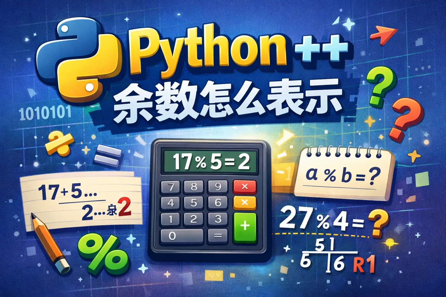 Python中并不存在++自增运算符,如果想表示余数,应使用取模运算符%。Python的取余规则与C等语言不同,结果符号与除数一致,并且满足整除与取余的数学等式关系。开发中可使用%或divmod()获取余数,同时需要注意负数取余规则和浮点精度问题。理解这些差异有助于避免常见错误并提升代码质量。