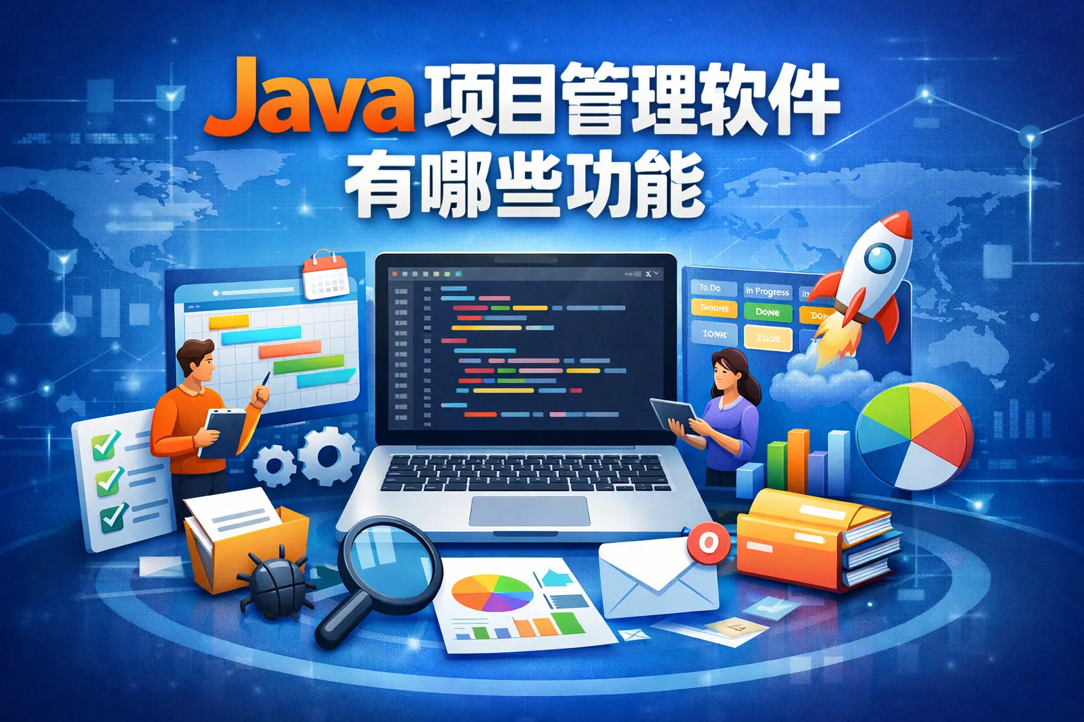 Java项目管理软件涵盖项目计划、任务跟踪、资源分配、缺陷管理、版本发布、文档协作与数据分析等核心功能,支持软件研发全生命周期管理。通过进度监控与质量控制机制,可有效降低延期与风险,提高项目成功率。未来将向智能化、云化与集成化方向发展。