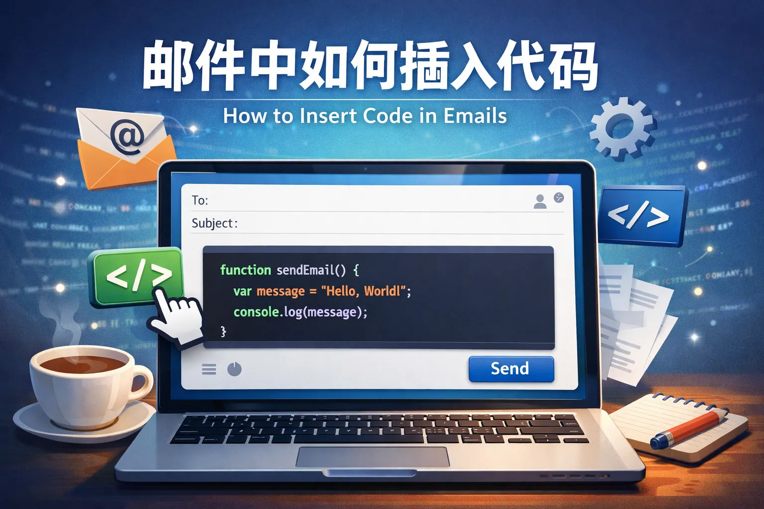 邮件中如何插入代码