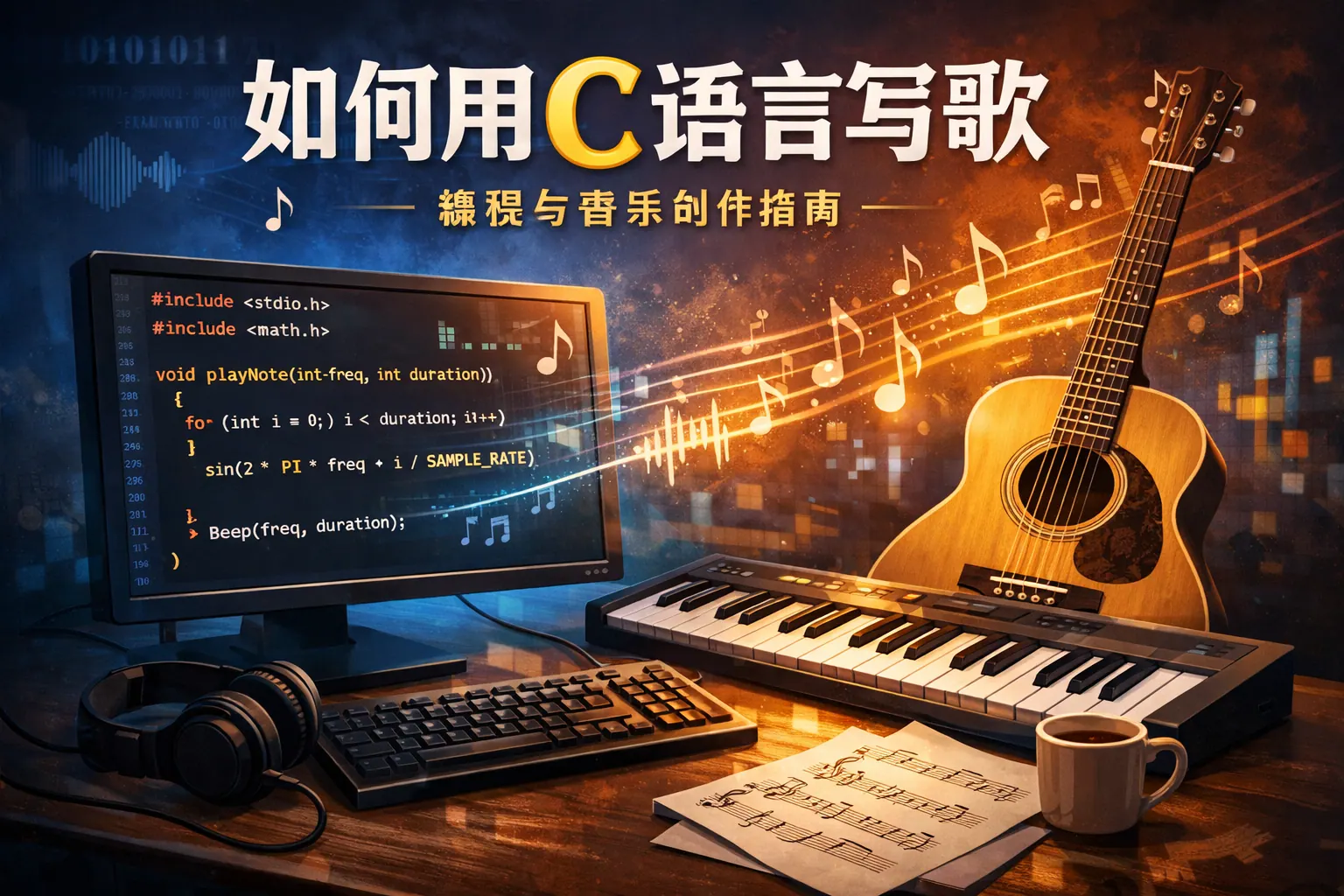 C语言写歌的核心在于理解声音的数字化本质,将音符转换为频率,通过波形函数生成音频数据,再输出为WAV或MIDI文件实现播放。文章系统讲解了声音原理、音符频率映射、WAV文件生成流程、多音轨叠加方法以及简单算法作曲思路,并对不同实现方案进行了对比分析。通过结构体设计和节奏控制机制,可以构建完整的程序化音乐系统。进一步结合规则算法甚至简单概率模型,还能实现自动作曲与工程级扩展应用。整体思路是将音乐抽象为数学模型,再用C语言实现数据层面的重构与输出。