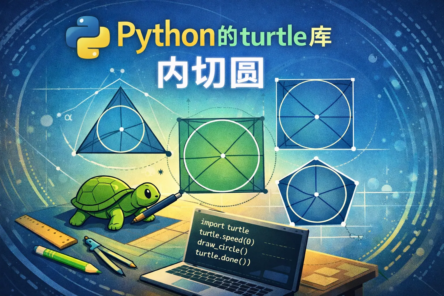 本文系统讲解了如何在 Python 的 turtle 库中绘制内切圆,重点解析了三角形内切圆的几何原理,包括海伦公式计算面积、半周长求半径以及利用边长加权法确定内心坐标,并给出完整示例代码。同时对正多边形内切圆公式进行了推导和实现说明,并通过表格对比不同图形的计算方法与实现复杂度,帮助读者全面掌握 turtle 内切圆的实现思路与应用场景。