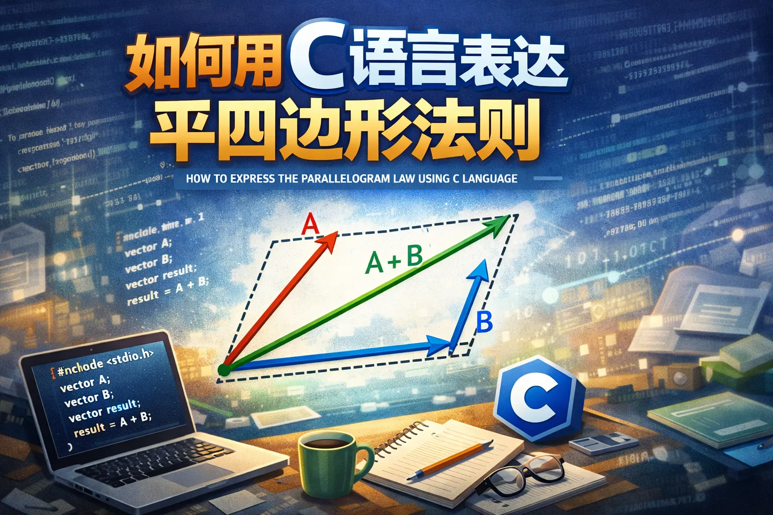 本文系统讲解了如何在C语言中表达平四边形法则,核心方法是通过结构体或数组定义向量数据结构,并利用分量逐项相加实现向量合成。文章从数学原理出发,分别介绍了二维与三维向量实现方式、通用数组写法以及浮点误差控制问题,并结合物理和图形计算场景说明工程应用。最终指出,平四边形法则在程序中的本质就是向量加法函数的封装,未来将结合高性能计算技术进一步优化实现效率。