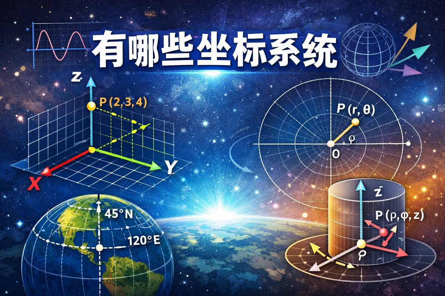 坐标系统是用于描述空间位置和方向的数学工具,常见类型包括直角坐标系、极坐标系、柱坐标系、球坐标系以及地理与工程坐标系统等。不同坐标系统在表达方式、计算复杂度和应用场景上存在差异,例如直角坐标适用于通用工程建模,极坐标适合旋转结构,球坐标常用于天文与物理问题,而地理坐标系统则广泛应用于测绘与导航。随着智能化和高精度定位技术的发展,坐标系统正向标准化与多源融合方向演进。