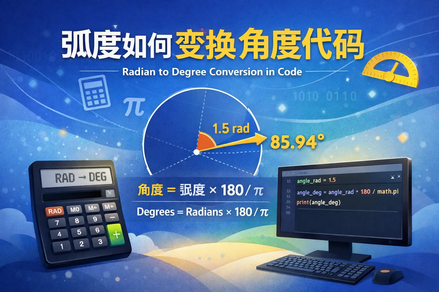 文章系统讲解了已知弧度如何编写代码进行计算的原理与实践方法,重点说明三角函数默认使用弧度单位,可直接调用数学库函数进行计算,并结合Python、Java、JavaScript与C++示例进行说明。同时分析弧度与角度转换公式、浮点数精度问题、图形开发应用场景以及工程封装建议,帮助开发者在实际项目中正确、高效地处理弧度计算逻辑。