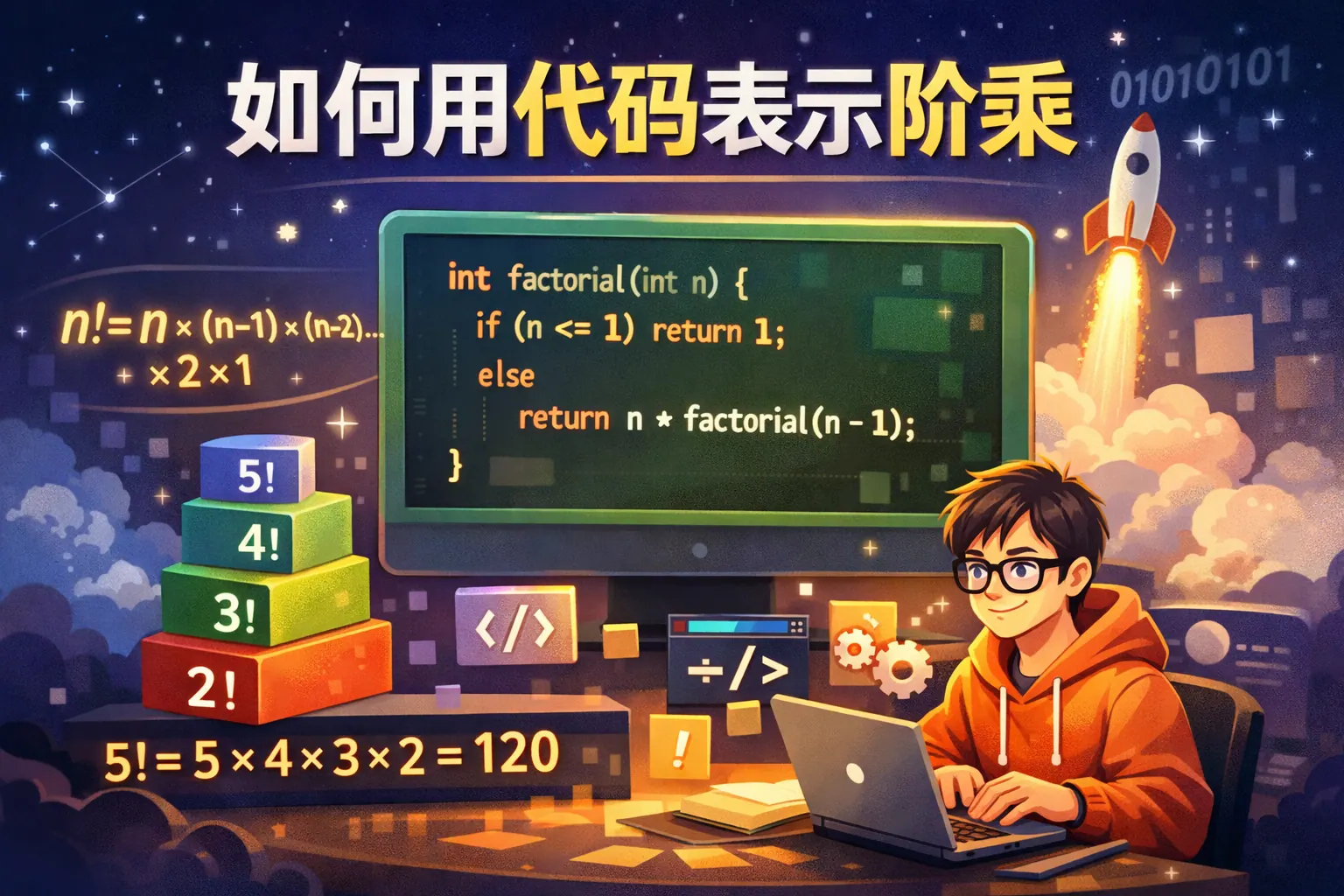 如何用代码表示阶乘